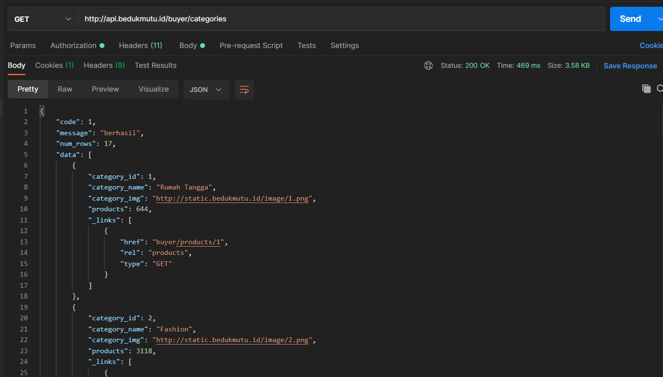 Untuk menampilkan seluruh data kategori yang ada pada marketplace bedukmutu